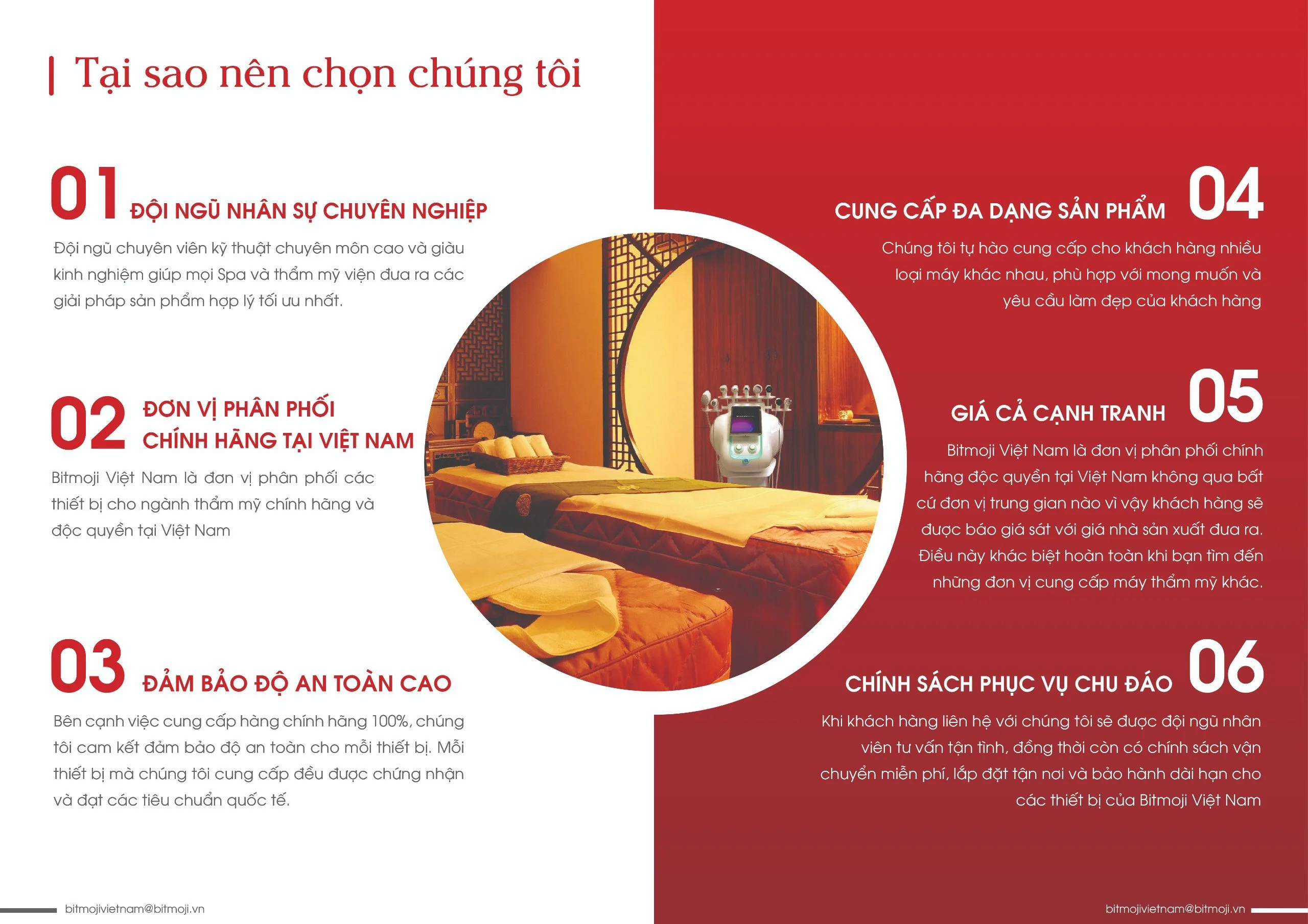 Chúng tôi tự hào mang đến cho các chủ spa và thẩm mỹ viện sản phẩm chất lượng cao hàng đầu với những chức năng đa dạng và công nghệ tiên tiến nhất, đảm bảo sự hài lòng và hiệu quả cao nhất trong quá trình chăm sóc da.